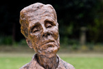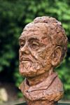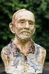 2006'peinzende man', naar model geboetseerd, daarna in zoutoven gebakken. portretkop man realistisch lichte kleur kan buiten