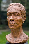 2007portret van een oudere vrouw, wachtend...berustend (gebakken klei; bruine patine)